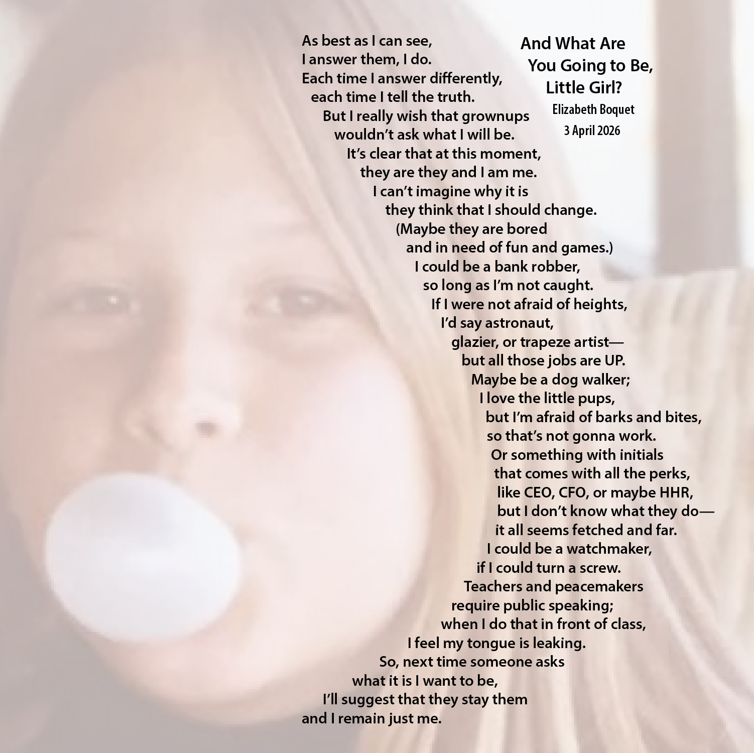 Only later do we discover that this duet of words and images isn’t a thing. After playing with various names — duets, hybrids, visual poetry, concrete poetry — we settle on Ensembles. We’ve created more than a hundred of them. Scroll down for some favorites—then tell me yours!